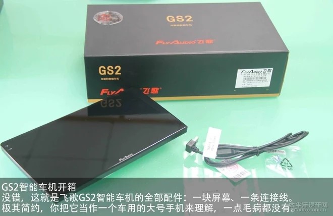 当我们拿到GS2智能车机的外包装盒时,发现整个包装和当今主流的智能iPad块头差不多,开箱拿出主机时,主机给我们的感觉更像是一个大号的安卓手机。