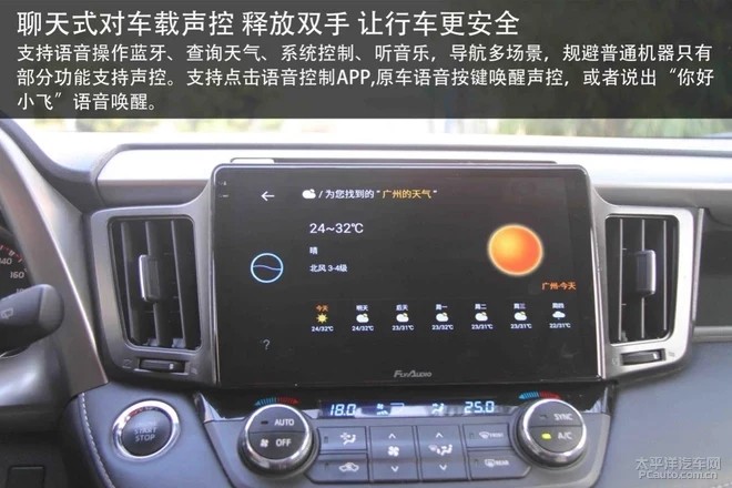 聊天式对车载声控 释放双手 让行车更安全,支持语音操作蓝牙、查询天气、系统控制、听音乐,导航多场景,规避普通机器只有部分功能支持声控。支持点击语音控制APP,部分车型支持原车语音按键唤醒声控,或者说出“你好小飞”语音唤醒。