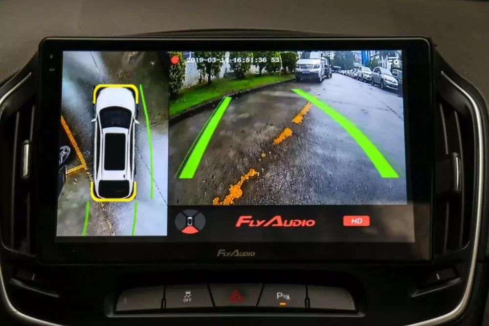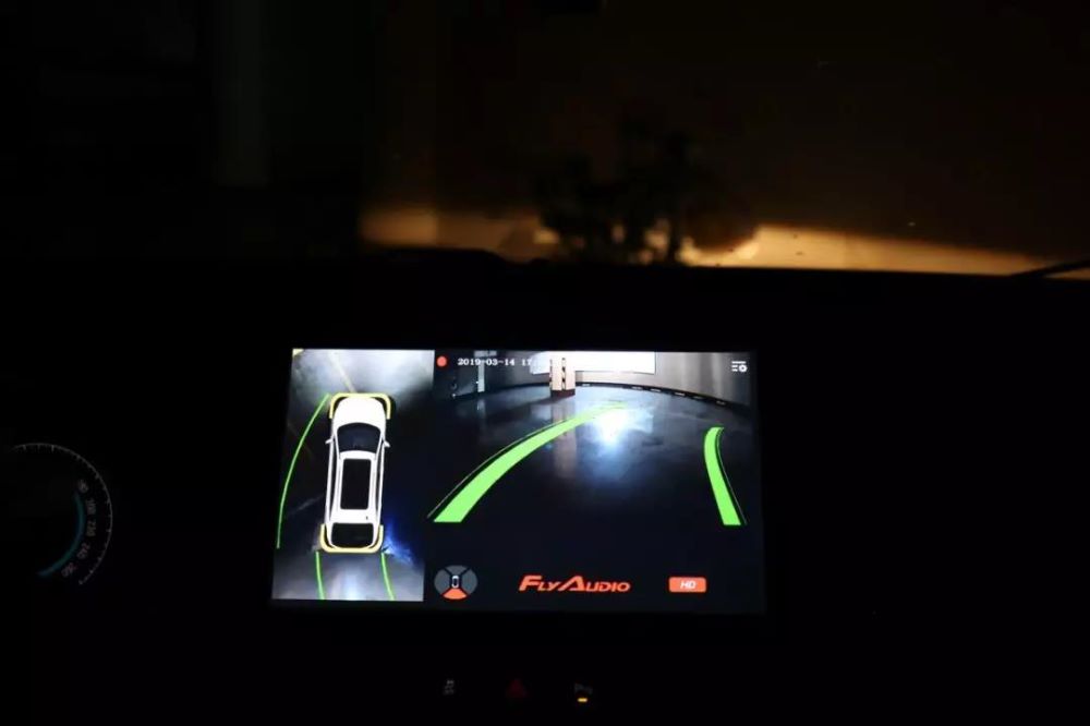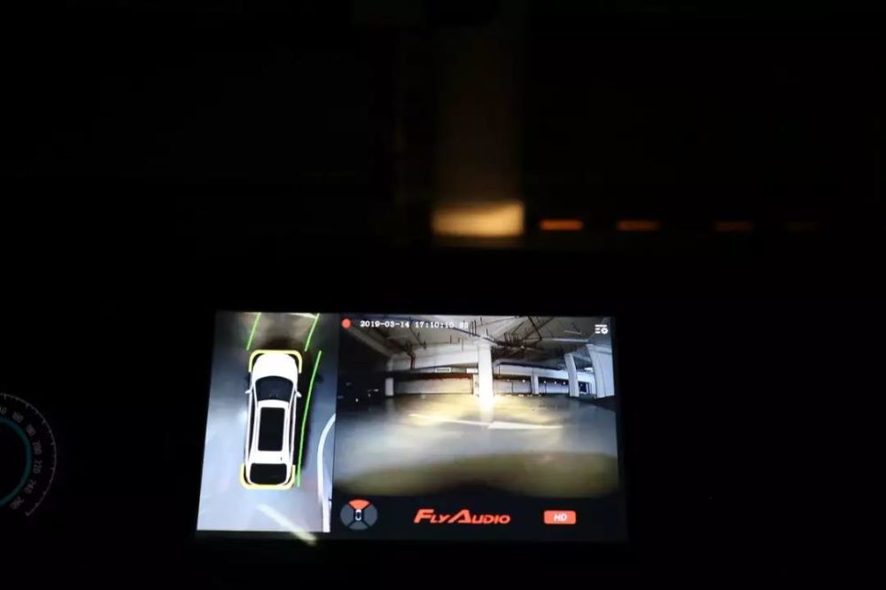 在打开360°全景后,左边画面是车辆俯视图,直观清晰的看出车辆四周的情况。点按俯视图各个方位就显示出对应的画面,例如点击后方,在右边画面就会显示车辆后面的画面。除此外通过打转向灯或者挂入后挡系统也会自动进入相应的画面。使用超大广角镜头,不仅视野更宽阔,画面的清晰度也非常好,无论是低光的处理还是高光的压制都表现得很不错。并且还支持轨迹随方向盘转动,车辆位置预判更加准确。
