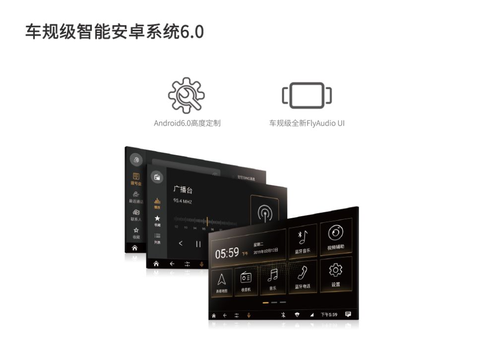 车规级个性定制安卓系统6.0,人性化人机交互体验,全新高端黑UI界面,提升用户操作感受,无论出差、社交或旅游,都能轻松驾享智慧化车生活。