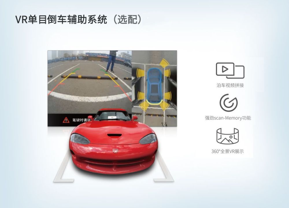 实现快速倒车,车辆全景模拟360°显示 车底透视,准确识别车身位置,准确还原车辆周边场景,解决倒车盲区问题。全景模拟与实时倒车画面同步显示,很大程度上避免倒车盲区、刮蹭等隐患。