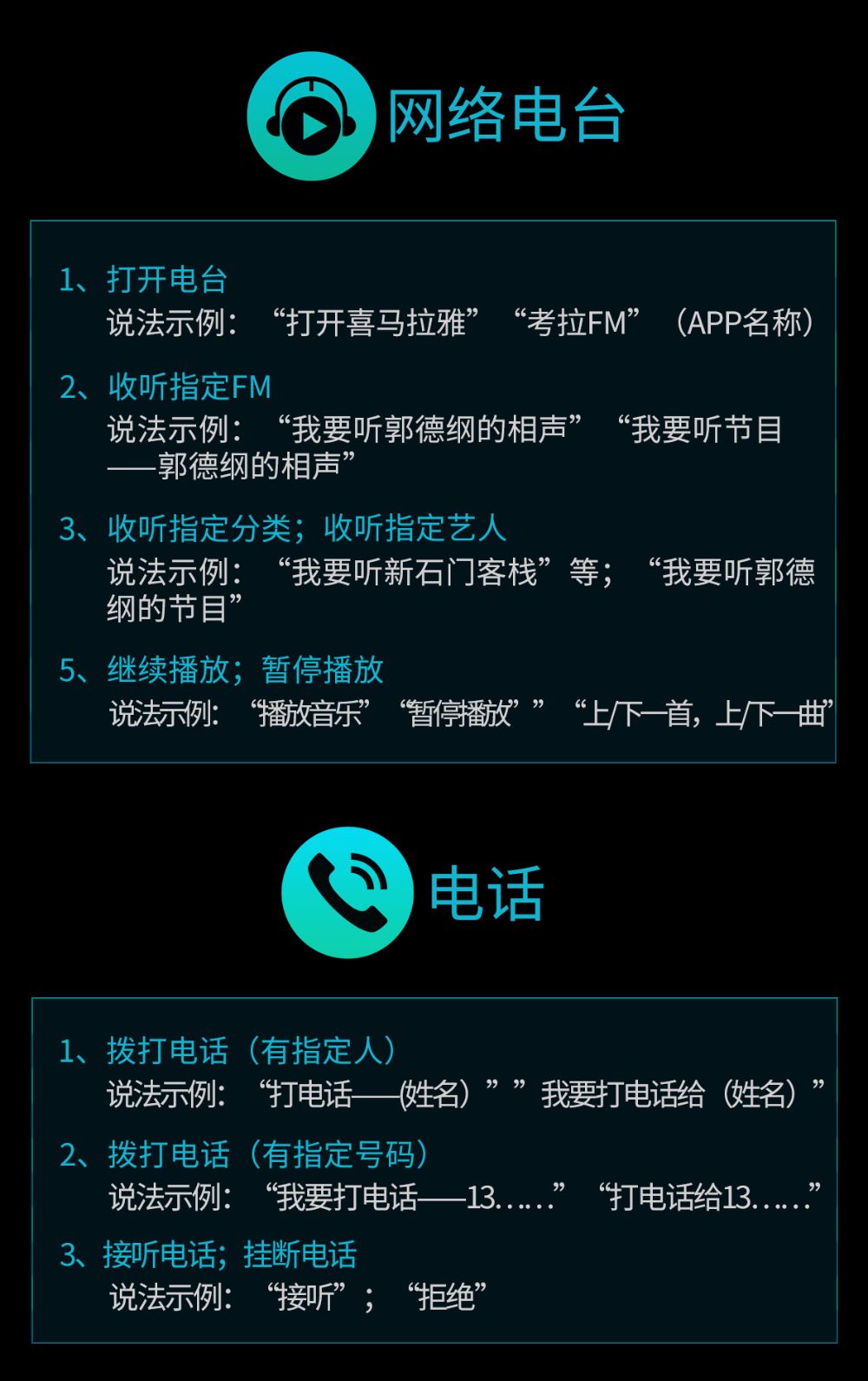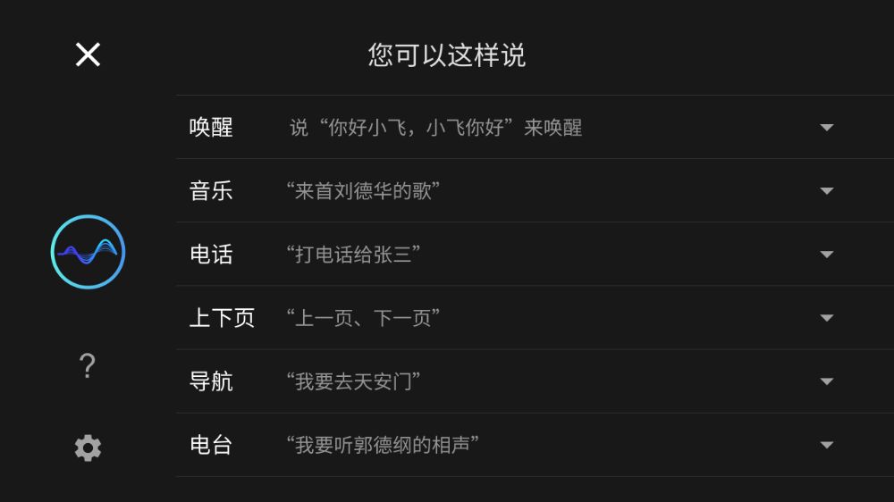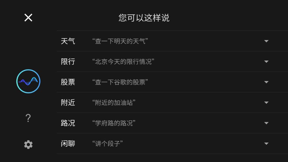 点击对话框“?”按钮,可查看车机部分唤醒词。