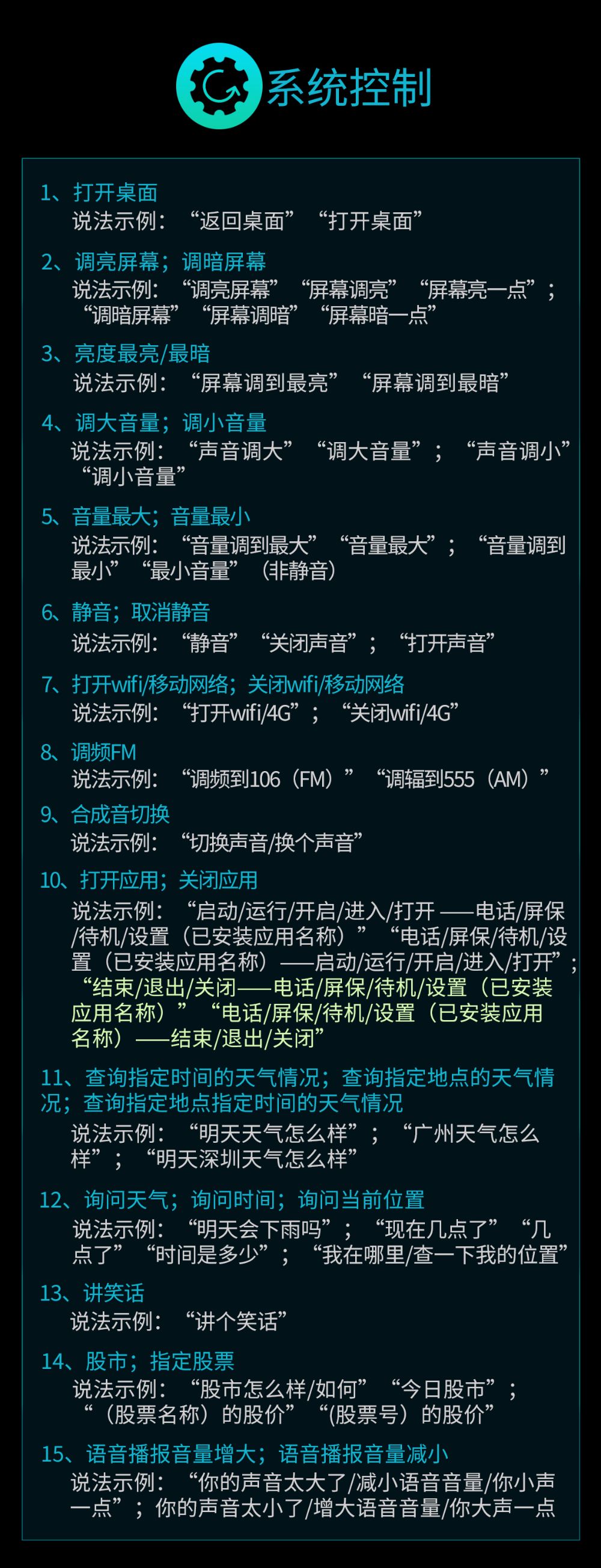 二、唤醒后全局语音指令明细