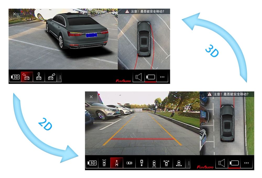 特色一:开机360°立体环视。在车主起步开车时,往往会忽略这时车身周围的情况,很少有司机养成上车前环顾爱车一周再出发。针对实际痛点,飞歌公司本款奥迪A6L专用3D版环视系统,支持开机起步,360°立体环视车周,扫清车身A/B/C柱盲区,带来更安全的驾驶体验!