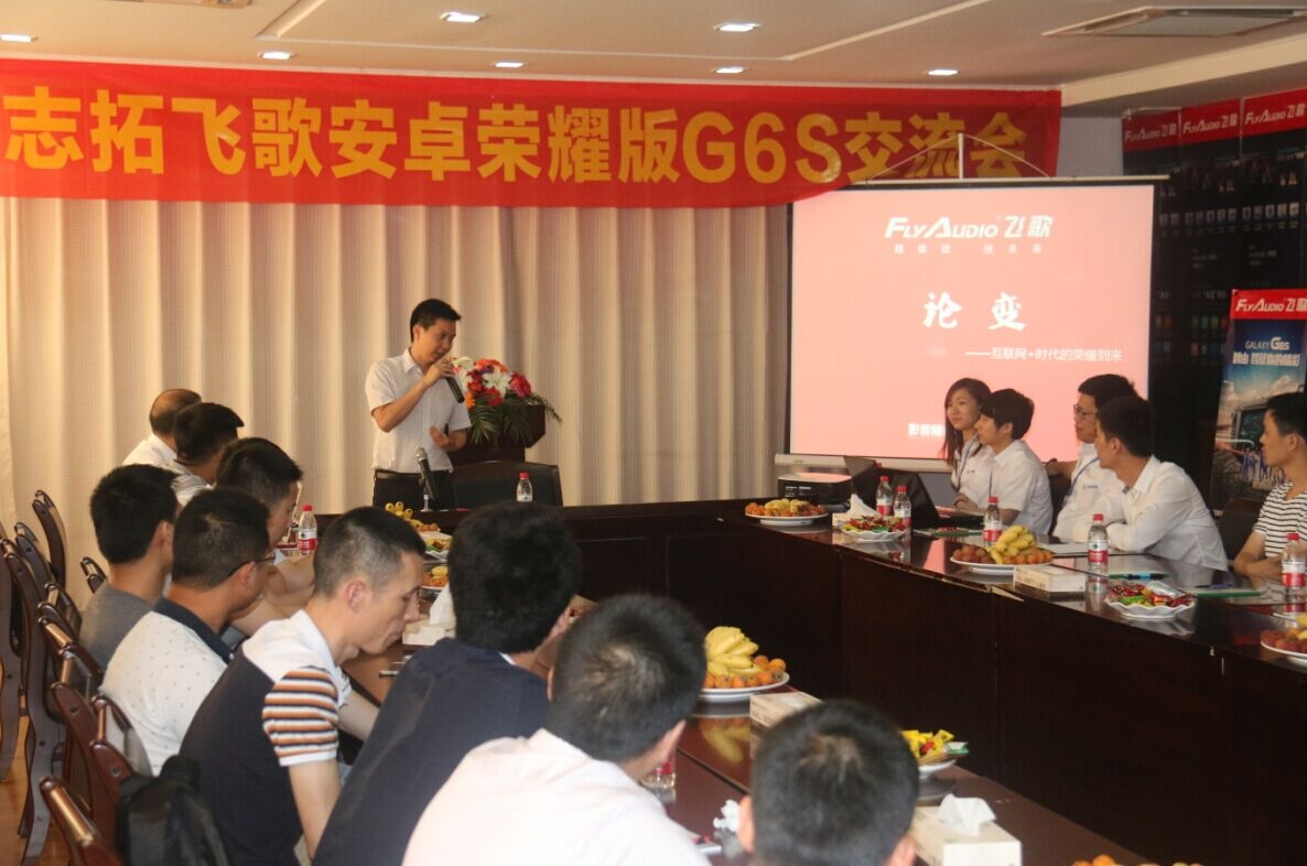 2015年5月31日,飞歌公司顺应互联网+时代大潮,一场新概念的产品上市研讨会在浙江上演。飞歌导航联合杭州志拓汽车用品,召集浙江省区域代理商开展了一场关于G6S上市的研讨会议。杭州志拓总经理徐善振先生、飞歌渠道事业部总监周海生、飞歌华东区经理步士成等皆出席会议,为G6S产品在浙江的荣耀登陆,出谋划策。