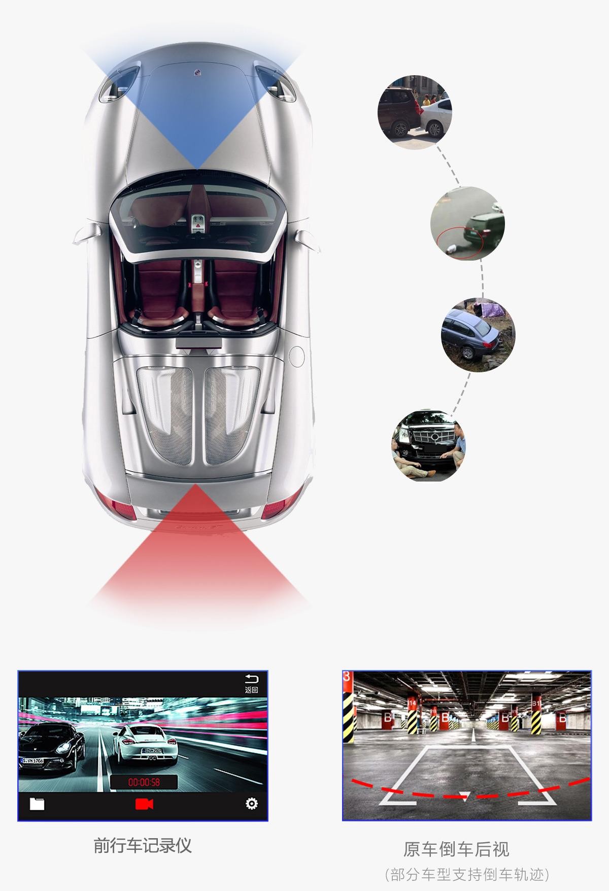 可选配功能:倒车后视、行车记录仪